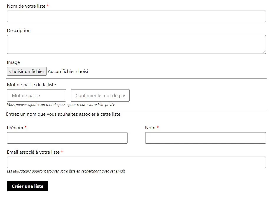Créez votre liste facilement, en remplissant les champs qui vous seront demandés.